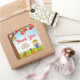 Ce sticker mignon et amusant comporte un épouvantail en chemise plaid rouge, des dungarees bleus et un casquette. Dans l'arrière - plan se trouve un arbre aux feuilles d'automne, une maison d'oiseaux, un écureuil qui brûle les noix, une adorable corneille sur un citrouille et un champignon de tabouret. Le texte combine écriture manuscrite et polices sans serif pour un look élégant et moderne. C'est parfait pour un anniversaire d'automne.