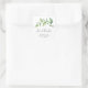 Étiquettes de faveur de baigneuse de mariage rustique avec feuillage comportant un design simple avec un brin peint à l'aquarelle verte avec de grandes feuilles, sur fond blanc. Ci-dessous se trouve le message « Amour et Remerciements » dans une police de caractères script et votre nom, le titre de l'événement et la date dans une police de caractères serif. Ces autocollants botaniques élégants sont parfaits pour une baigneuse de mariage estivale et ajoutent une touche personnelle à vos faveurs.