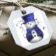 Un joli autocollant fantaisiste, portant son chapeau en velours bleu et son gilet assorti, entouré d'étoiles bleues pour Noël.