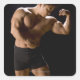Sticker Carré Bodybuilder masculin flexion des muscles, vue avan