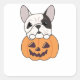 Sticker Carré Bulldog En Chiens Citrouilles Mignons Joyeux Hallo