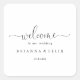 Cet autocollant de carré d'accueil mariage de script fantaisie calligraphie est parfait pour un mariage rustique. Le design sobre et élégant présente une typographie de script classique et sophistiquée en noir et gris. Ces étiquettes sont parfaits pour les sacs de bienvenue et les mariages de destination des clients de l'hôtel.