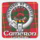 Cameron Clan Tartan, Crest Badge et Motto sur une grande variété de produits. La ceinture et la boucle indiquent que le porteur est membre du clan symbolisé par la crête et la devise du chef dans la ceinture. La ceinture qui encercle la crête remplace l'expression gaélique "un céleste cinneadh" (crête du chef du clan). Il est généralement admis que les tartes claniques datent du début du XIXe siècle. Le Cimier du Clan Cameron "Un bâton de cinq flèches, propre, attaché avec une bande, des gules, encerclé par une ceinture et une boucle." La devise Clan Cameron est choisie par le chef Clan. Aonaibh Ri Cheile, Unissons-nous. Cameron Clan Septs : Chambers, Chalmers, Clark, Clarke, Clarkson, Cleary, Clerk, Dowie, Gibbon, Grimesey, Kennedy, Krywonis, Leary, Lokcick, Lonbie, Lonie, MacAldowie, MacAlonie, MacChlerich, MacChlery, MacClair, MacClerie, MacElhaney MacGillery, MacGillonie, MacIldowie, MacKail, MacKell, MacLear, MacLeary, MacLerie, MacMartin, MacOnie, MacOstrich, MacOurlic, MacPhail, MacSorley, MacUlric, MacUlrig, MacVail, MacWalrick, Martin, Paul, Sorley, Sorlie, Taylor