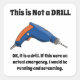 Restez calme et faites vos affaires normales. Ce n'est vraiment qu'une perceuse. Comme le montre la photo. S'il s'agissait vraiment d'une urgence, je serais plus excité et je courrais, agitant mes mains en l'air, et hurlant fort. Prenez avec humour la défense civile traditionnelle et d'autres avertissements auxquels nous sommes si habitués. Aussi une amusante prise sur les outils électriques à la maison. Grand cadeau pour ce bricoleur ou toute personne intéressée par la construction ou les réparations.