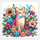 Sticker Carré Chat orange en Fleurs Pixel Art
