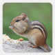 Un chipmunk assis sur un rocher et farçant ses joues avec des noix. Photo prise à Ticondéroga, NY.