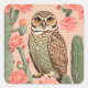 Sticker Carré Chouette Et Cactus Élégants À Brûler