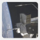 Space Shuttle Discovery, rétroéclairé par l'horizon terrestre, avec STS-128.