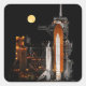 La navette spatiale Discovery se trouve sur la rampe de lancement 39A au Kennedy Space Center à Cape Canaveral en Floride. Une lune presque pleine brille dans le ciel pour ajouter un arrière - plan dramatique.