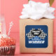 Étiquette de drapeaux de course en noir et blanc avec un arrière - plan bleu. Merci préférez l'autocollant pour votre fête d'anniversaire à thème de course.