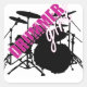 Sticker Carré Drummer Girl Purple and White Text with Drum Kit