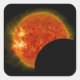 The dark shadow of the moon crosses in front of the sun during a solar eclipse captured space and enhanced in this image.