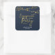 Cet élégant autocollant carré présente des cordes de lumières et le mot "Engagement Party" en faux or contre un arrière - plan bleu foncé. C'est génial pour une fête fiançailles. Consultez les invitations et les éléments correspondants ici https://www.zazzle.com/collections/strings_of_lights_faux_gold_celebration_collection-119311942951401241?rf=238364477188679314 Personnalisez-le avec vos détails en remplaçant le texte de l'espace réservé. Pour plus d'options, cliquez sur le bouton "Customiser". *Veuillez noter que le filigrane Zazzle qui apparaît dans l'aperçu du zoom n'apparaîtra PAS sur le produit imprimé final. © Bois de rose et agrumes