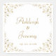 Ces élégants autocollants de mariage d'inspiration vintage arborent les noms de la mariée et du marié en caractères dorés, encadrés par un délicat motif vintage de vigne dorée. Ajoutez la date du mariage ci-dessous.