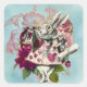 Autocollants carrés avec version colorée d'Alice dans le lapin blanc de Wonderland en tant que membre du tribunal de la Reine des Coeurs. Ajouté floral sur arrière - plan bleu en détresse. Idéal pour les soirées à thé Mad Hatter et autres évènements fantaisistes.