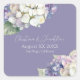 Ces stickers de mariage fleuri romantique présentent des hydrangées violettes et blanches aquarelles sur un arrière - plan pourpre poussiéreux couleur lavande. Un délicat bouquet de fleurs d'hydrangée est représenté sur le dessus, et un autre sur le fond.