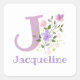Sticker Carré Initiale J Plus Nom Jacqueline & Fleurs Design