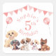 Un autocollant d'âge de fête pour Chien coquelicot mignon avec l'aquarelle illustrant les différentes races de chiens, le bunting rose et les ballons. Tout le texte peut être modifié. Il suffit d'ajouter un nom et un âge pour personnaliser. Un décor de fête pour amoureux de les chiens et enfants. Vous pouvez ajouter une couleur Arrière - plan si nécessaire, il suffit de cliquer sur le bouton personnaliser.