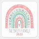Sticker Carré Joyeux Noël Arc-en-ciel aquarelles rouge vert