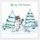 Sticker Carré Joyeux Noël ! Snowman avec chat et chiot