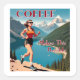 Vous courrez sur de hautes montagnes et faites des courses ultra-courantes à cause du café et du café seul. Ce superbe design montre un coureur dans les montagnes dans le style d'une affiche de voyage rétro vintage.