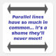 Les lignes parallèles ont tellement en commun, c'est dommage qu'elles ne se rencontrent jamais. Blague drôle, blague papa, blague mathématique.