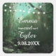 Beau mariage rustique extérieur Enregistrer la date autocollant sceau avec des lampes à cordes et touche de brillant magique parmi les arbres. Texte de typographie de style tableau de bord. Un choix parfait pour le jardin ou tout lieu de mariage extérieur.