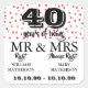 Sticker Carré M. Mme Right Fun 40e anniversaire Ruby Hearts