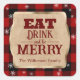 Sticker Carré Mangez Boire et Soyez Joyeux Rouge Rustique Plaid
