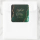Sticker Carré Mariage de script d'agate d'or Emerald Green