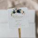 Complimentez votre événement mariage classique avec cet autocollant carré de bienvenue mariage de fleurs rose or. L'aménagement comprend de l'aquarelle et du bleu dessiné à la main, des fleurs roses et des feuilles verts dans de beaux bouquets.