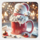 Sticker Carré Marshmallow Snowman Dans Chocolat Chaud