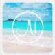 Sticker Carré Monogramme turquoise de plage de sable océanique p