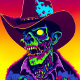 Sticker Carré Neon Zombie Cowboy