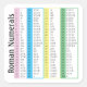 Un autocollant qui a les chiffres romains pour 1 à 100 dessus. Est très pratique quand vous essayez de comprendre ce que les chiffres romains représentent sur quelque chose. Il est également utile comme une aide pédagogique formidable pour les enfants et les adultes. A les mots "chiffres romains" le long du côté gauche, puis à droite il a les numéros réguliers dans les bandes de couleur et à droite de chaque bande de couleur est le nombre romain pour ce numéro. Vous pouvez utiliser ces autocollants comme outils pédagogiques, les coller dans un livre, ou les coller là où vous pensez qu'ils fonctionneraient le mieux.
