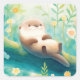 Sticker Carré Otter Lying on Log in Spring Green Meadow