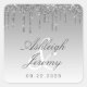 Ces autocollants de mariage sont dotés d'une parties scintillant brillante en argent faux bordure supérieure sur un arrière - plan argenté à l'ombre. Personnalisez-les avec les noms de la mariée et du marié dans un élégant script gris foncé superposé sur un symbole d'esperluette blanche, avec la date mariage ci-dessous en gris foncé sans serif police.