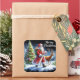 Sticker Carré Père Noël et Reindeer dans une forêt de neige