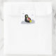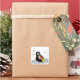 Un mignon pingouin assis sur un banc de glace tenant un cadeau enveloppé. Customisez comme vous le souhaitez.
