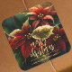 Un design élégant de poinsettias rouge et or de Noël et de feuilles est présenté sur ces autocollants carrés personnalisés avec votre nom et Joyeux Noël en lettres chic. CORRESPONDANCE d'objets dans notre collection.