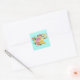 Un Python albino jaune se déplace autour de roses roses et pêche dans un arrière-plan turquoise.