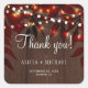 Un mariage personnalisé merci autocollant de faveur rustique avec feuilles rouille et cordes de lumières scintillantes sur un arrière - plan en bois de grange brun foncé. +++++++++++ Idéal pour votre automne automne élégant rustique jardin extérieur à thème mariages.