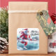 Sticker Carré Santa Claus Enjoys Ice Skating on a Snowy Pond