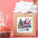 Sticker Carré Santa Claus Enjoys Ice Skating With a Reindeer