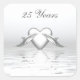 sticker carré avec mon image originale couleur argent de deux dauphins et un coeur d'argent sur les eaux brillantes. Le texte personnalisable dit "25 ans".