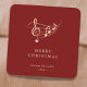 This simple and modern square sticker features a gold music stave with music notes and a treble clef, accompanied by "Merry Christmas" in elegant typography. Personalize it with your own custom text. Perfect for music ensembles, choir, music teachers, holiday party favors, or gifts.
