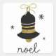 Parties scintillant en faux noir et or avec une touche rétro sophistiquée pour la période de Noël des Fêtes. cloche en noir et or de style vintage avec un arc de parties scintillant et balançoires dans les flocons de neige et noel dans une police rétro manuscrite noire avec une ambiance rétro moderne pour mettre à jour n'importe quelle enveloppe ou cadeau cette saison de vacances.