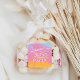 L'autocollant de favori "Bach Party" rose est un ajout amusant pour une fête de bachelorette avec le nom de la future mariée ci-dessus dans une police de caractères script. Le fond est coloré avec des couleurs joyeuses bleues et jaunes.