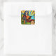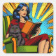 Sticker Carré Style comique Pop Art femme Lecture et chat