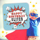 Superhero Comic Speech Bubble Boy Happy Birthday sticker. Ajoutez votre nom. Un autocollant d'anniversaire amusant pour les garçons.